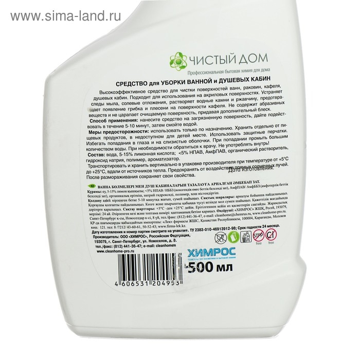 Средство для уборки ванной и душевых кабин Clean Home, 500 мл