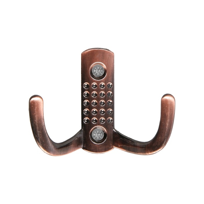 Крючок мебельный ТУНДРА TKD011, двухрожковый, медь