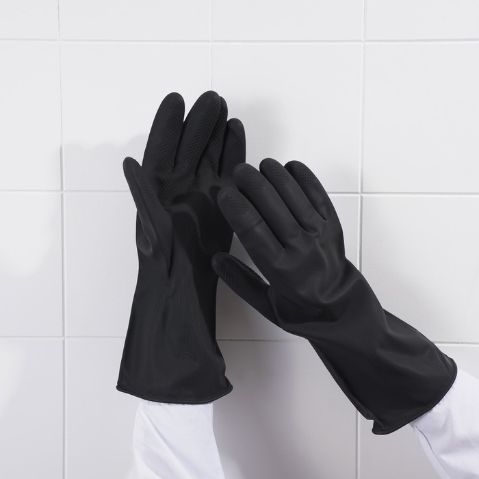 Перчатки хозяйственные латексные Доляна, размер XL, химически стойкие, цвет чёрный