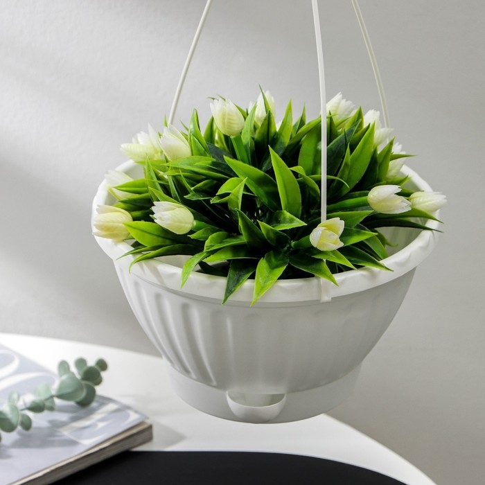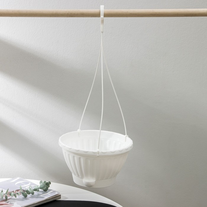 Кашпо уличное для цветов «Мирабель», 2,5 л, подвесное, с прикорневым поливом, цвет белый