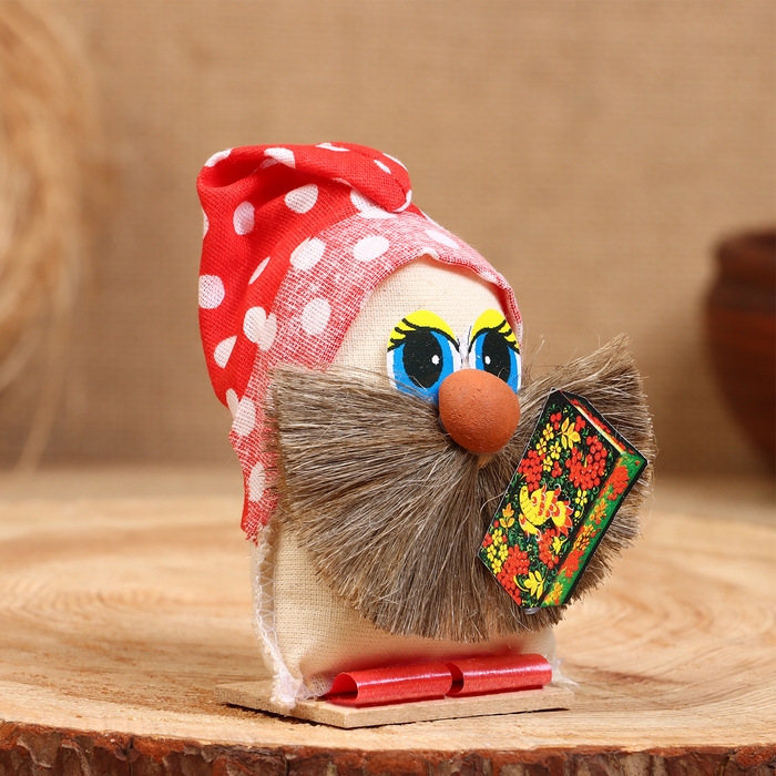 Оберег-домовой "Василек в льняном колпаке, с топором", 23х15х8 см, микс