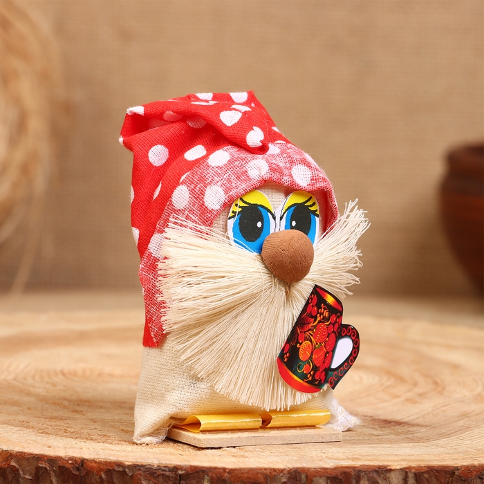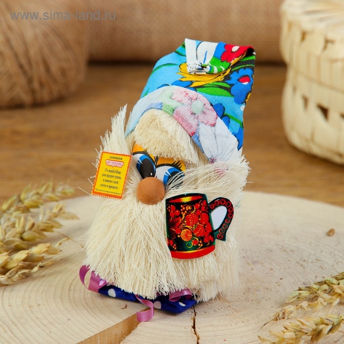 Оберег-домовой "Василек в льняном колпаке, с топором", 23х15х8 см, микс