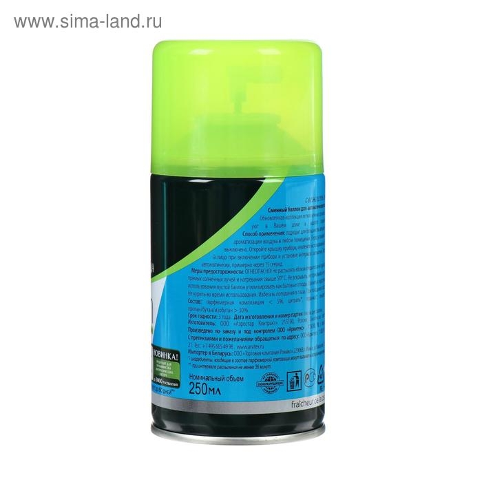 Способ применения: в соответствии с инструкцией для автоматического освежителя воздуха, вставить аэрозольный баллон в диспенсер и использовать освежитель по назначению.