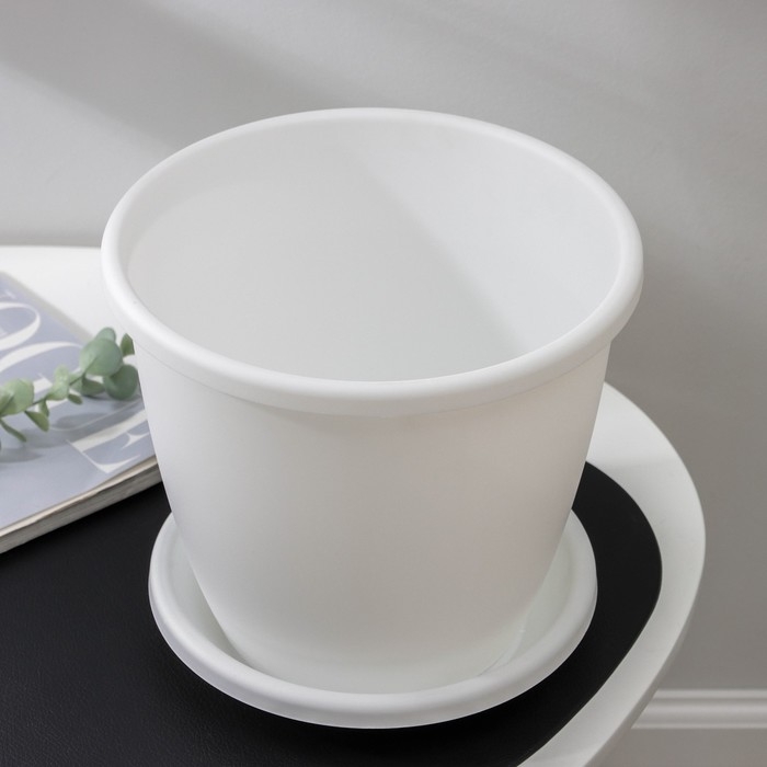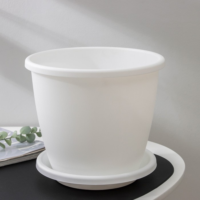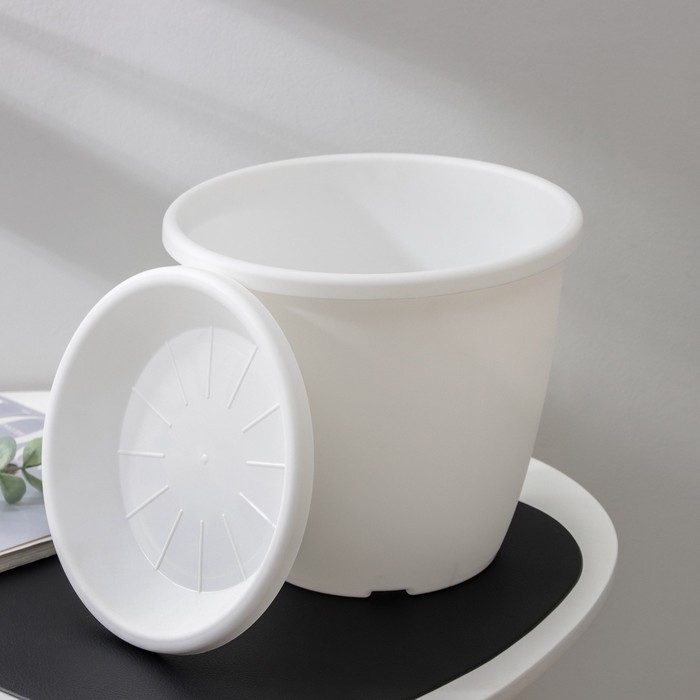 Горшок для цветов с поддоном «Афина», 5,5 л, пластиковый, цвет белый
