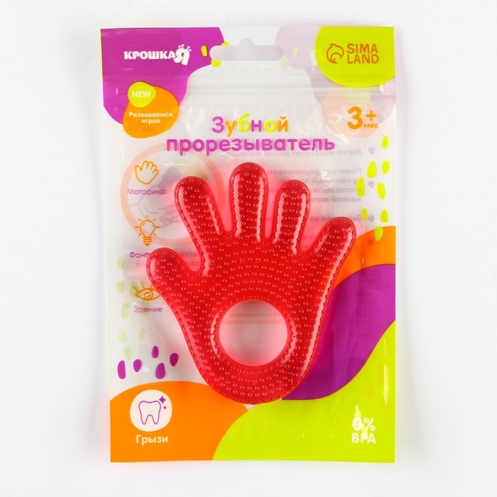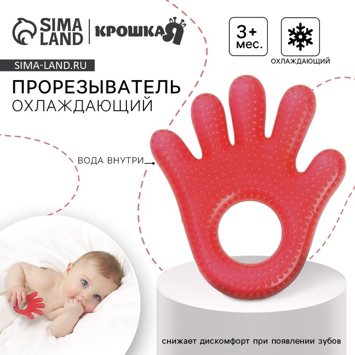 Прорезыватель охлаждающий с водой «Ладошка», цвет красный, Крошка Я