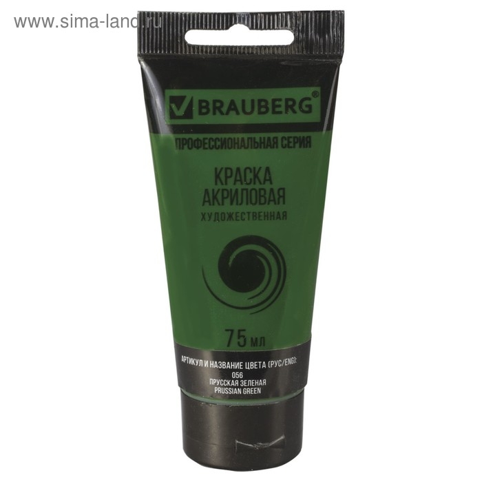 Краска акриловая художественная туба 75 мл, BRAUBERG "Прусская зелёная"
