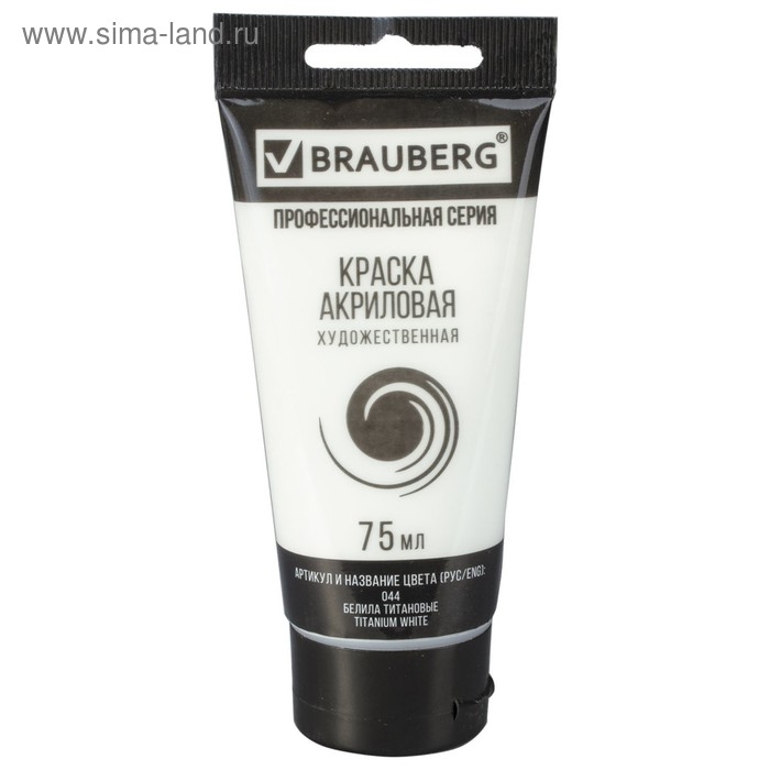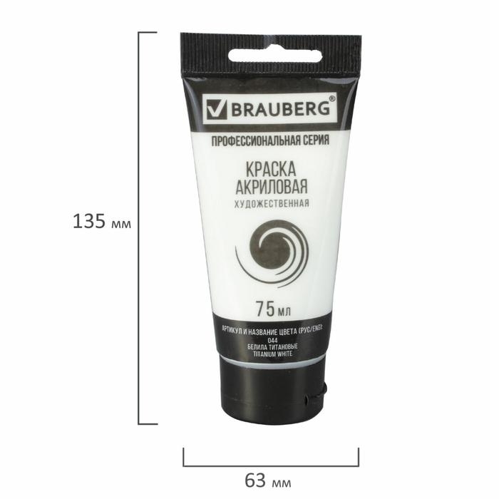 Краска акриловая художественная туба 75 мл, BRAUBERG "Белила титановые"