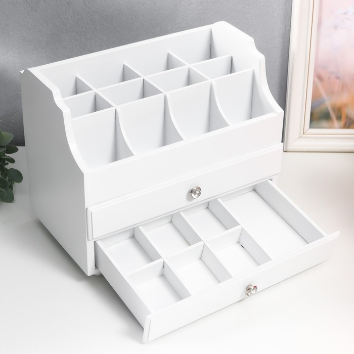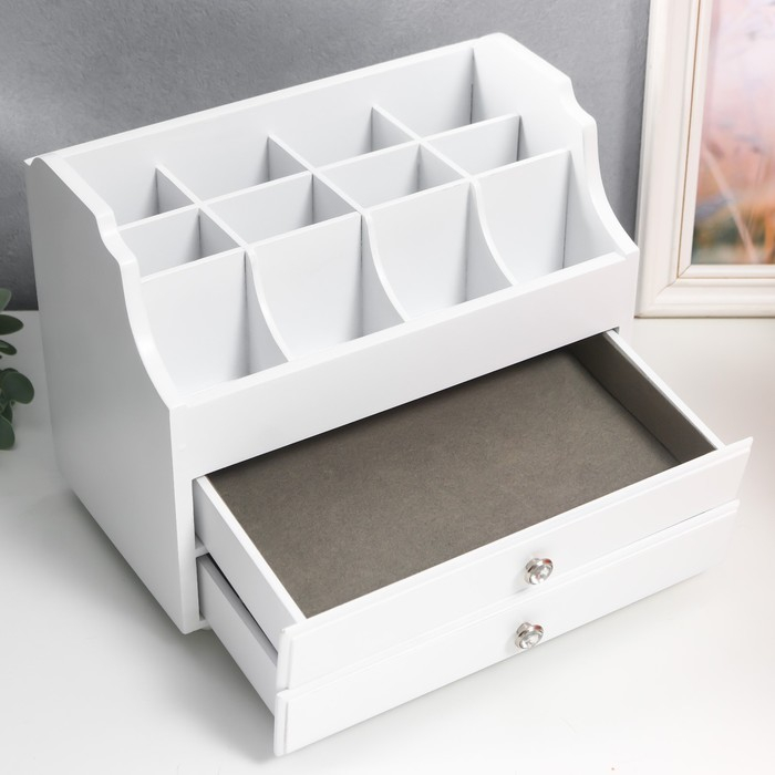 Шкатулка дерево для украшений и косметики 2 выдвижных ящика белая 26х16,5х21,7 см