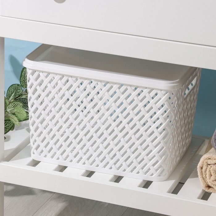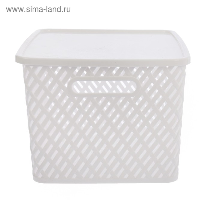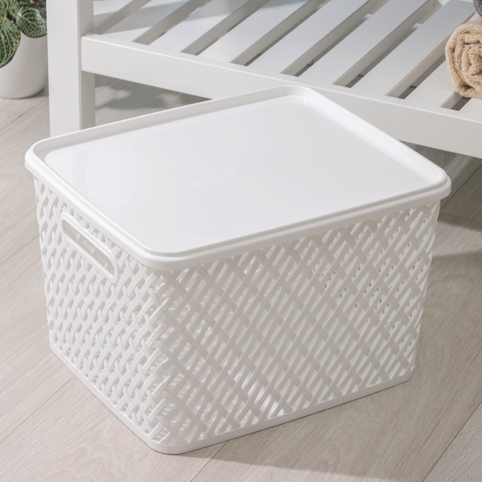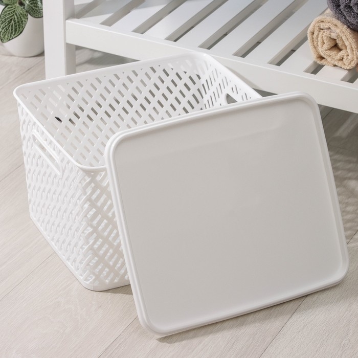 Корзина для хранения с крышкой «Плетёнка», 35×29×22,5 см, цвет белый