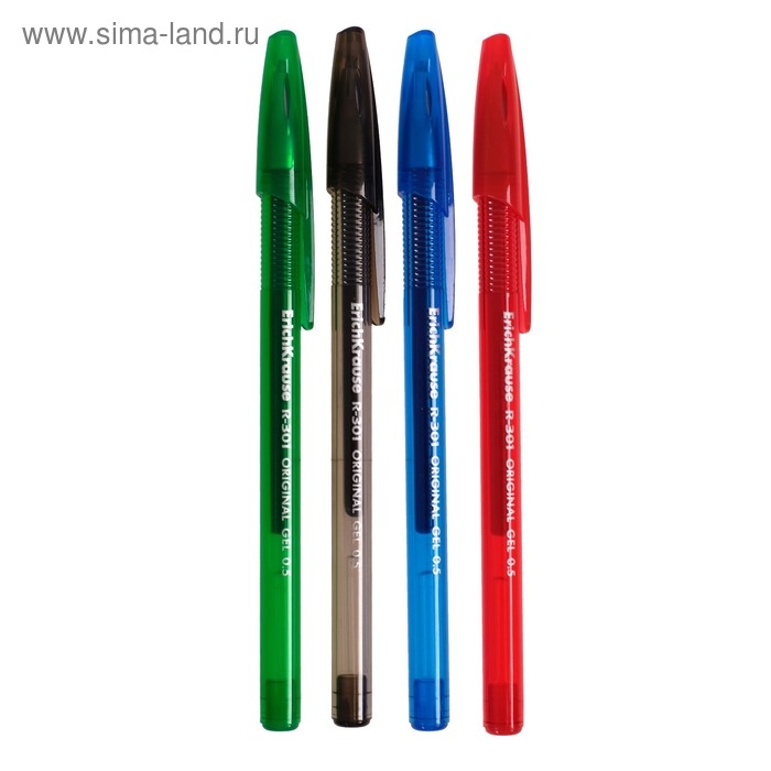 Набор ручек гелевых 4 штуки, ErichKrause R-301 ORIGINAL Gel, узел 0.5 мм, чернила микс, длина линии письма 600 метров, европодвес