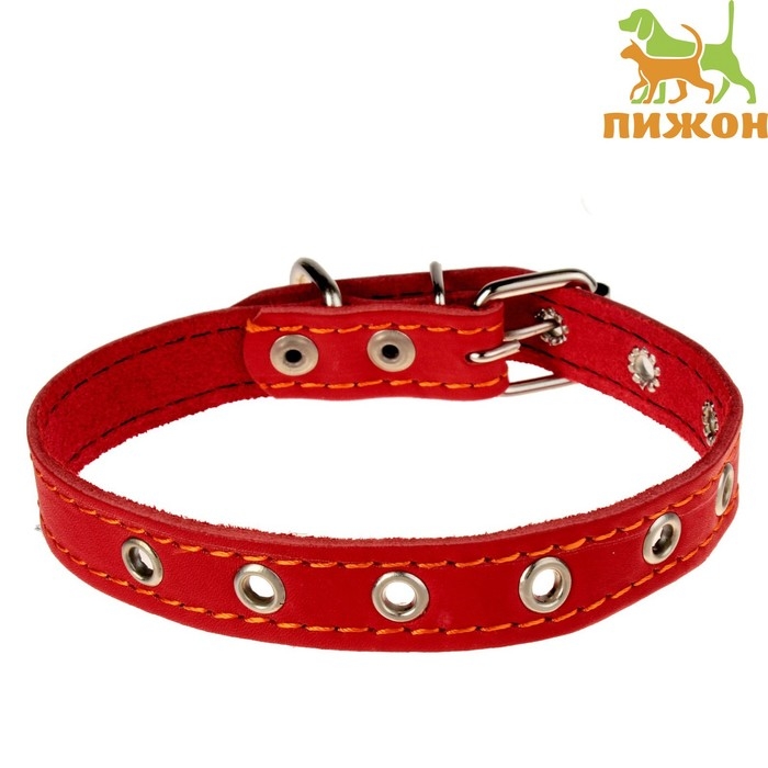 Ошейник кожаный однослойный безразмерный, 45 х 2 см, ОШ 18-39 см, красный