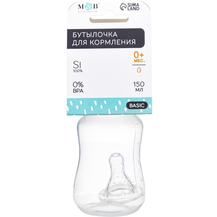 Бутылочка для кормления, классическое горло, приталенная, 150 мл., от 0 мес., цвет белый