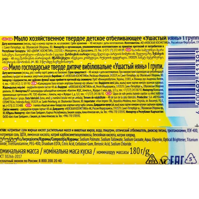 Мыло Ушастый Нянь «Отбеливающее», хозяйственное, 180 г