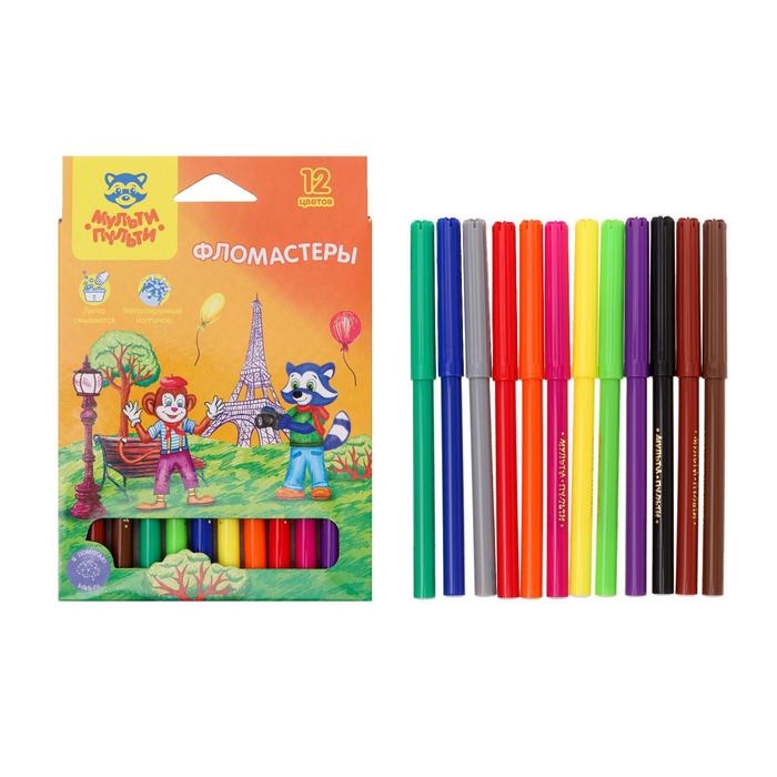 Фломастеры 12 цветов Мульти-Пульти "Енот во Франции", смываемые
