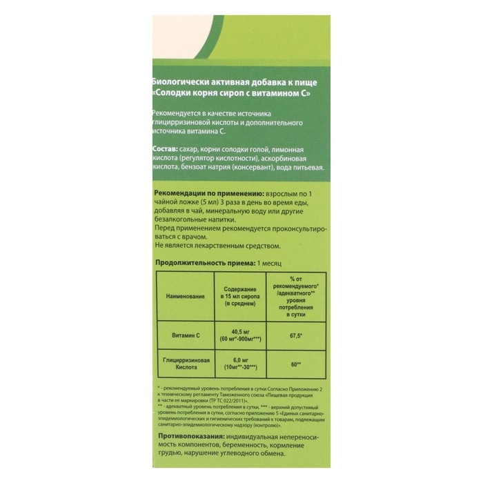 Состав: корень солодки голой, аскорбиновая кислота (витамин C), сахар, лимонная кислота, бензоат натрия.