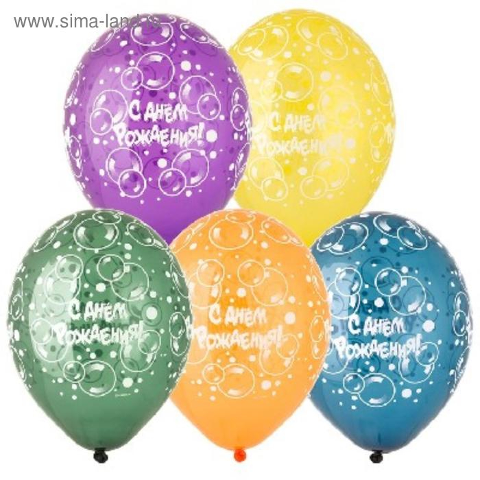 Шар латексный 14" «С днём рождения. Пузыри», шелкография, кристалл, набор 25 шт., МИКС