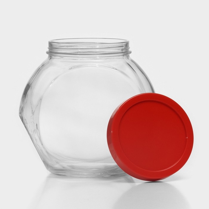 Банка с крышкой стеклянная Bella, 2 л, красная крышка