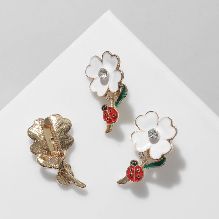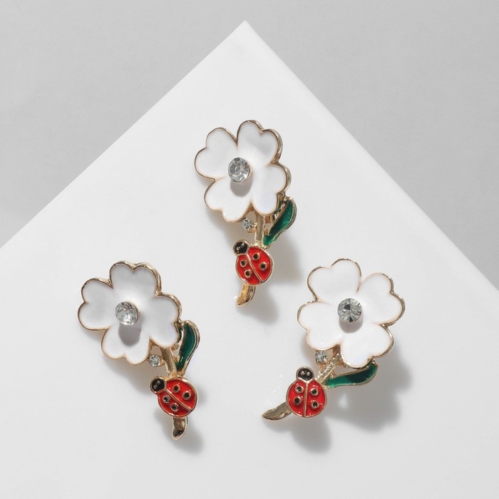Брошь «Цветы ромашки» с божьей коровкой, цветная в золоте (неделимая фасовка 12 шт., цена за шт.)