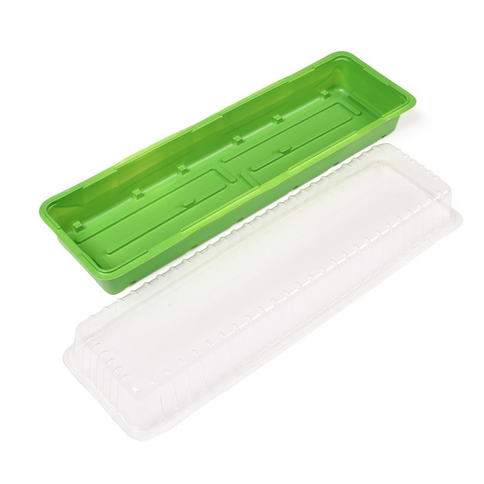 - Благодаря прозрачной крышке создаёт парниковый эффект, тем самым сохраняет необходимую влажность и температуру для саженцев.