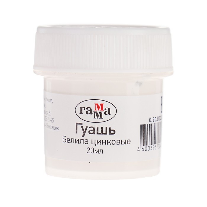 Гуашь художественная банка 20 мл, Гамма, белила цинковые, 0.20.В020.0011