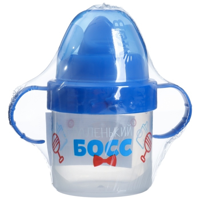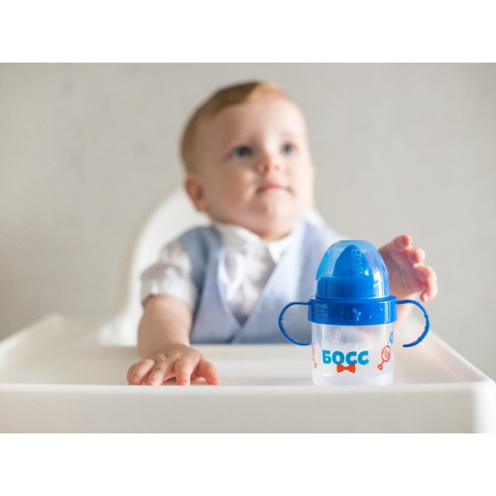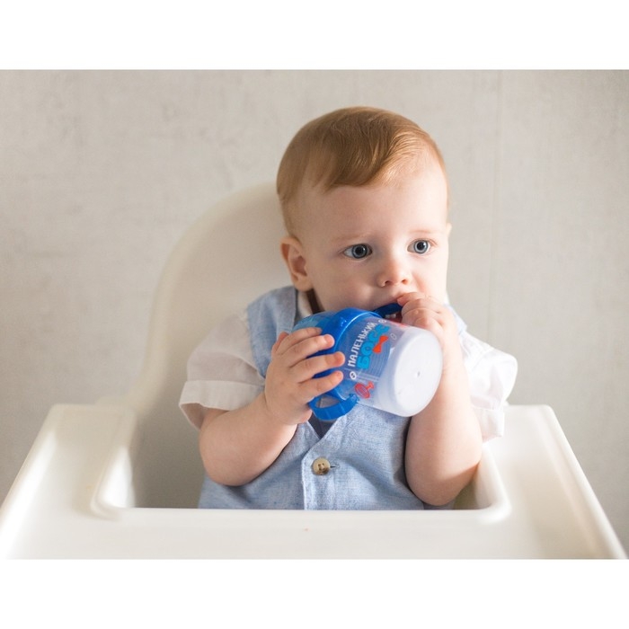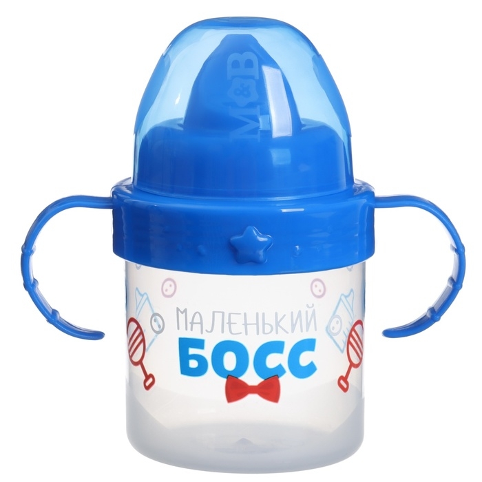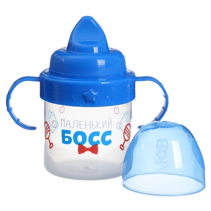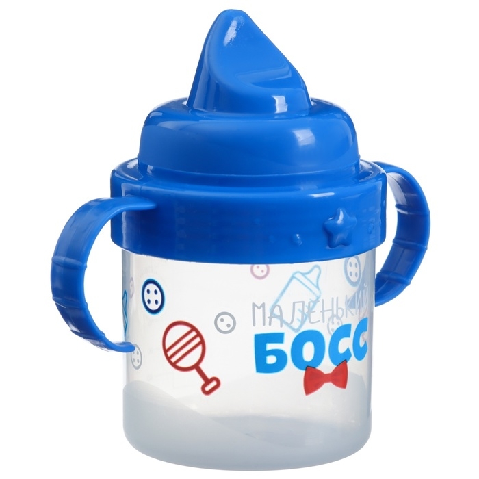 Поильник детский с твёрдым носиком «Маленький босс», 140 мл., с ручками, цвет синий