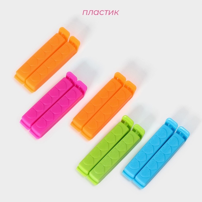 Зажимы для пакетов Доляна, 7,5 см, 10 шт, цвет МИКС