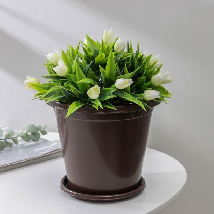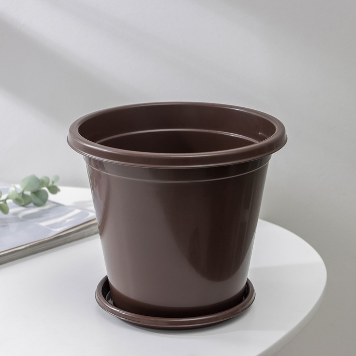 Горшок для цветов с поддоном «Эконом», 2 л, пластиковый, цвет коричневый