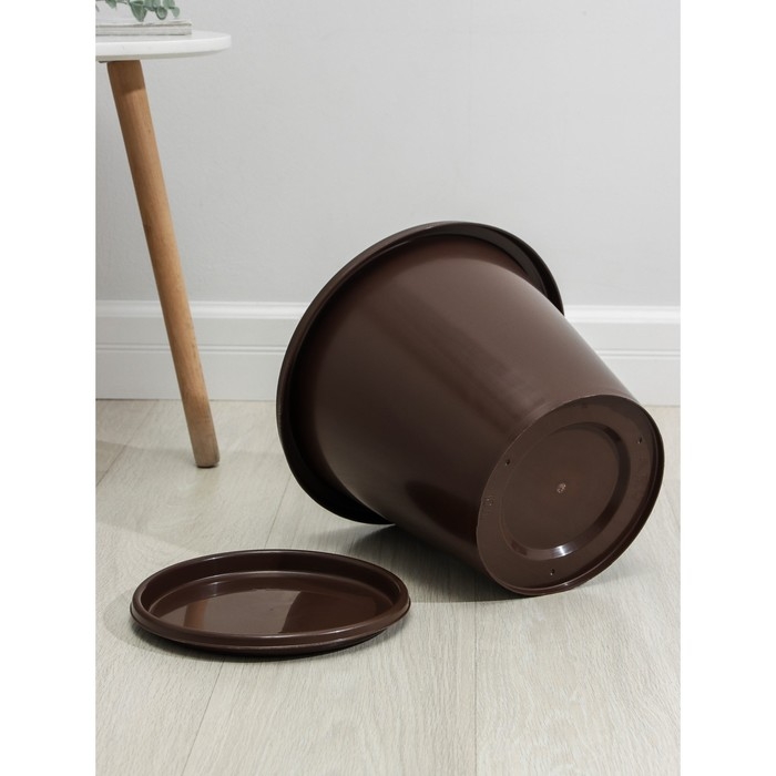 Горшок для цветов с поддоном «Эконом», 10 л, пластиковый, цвет коричневый