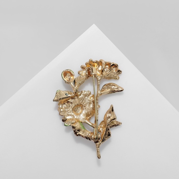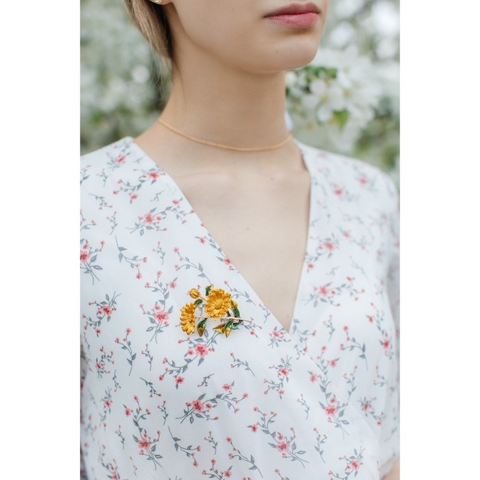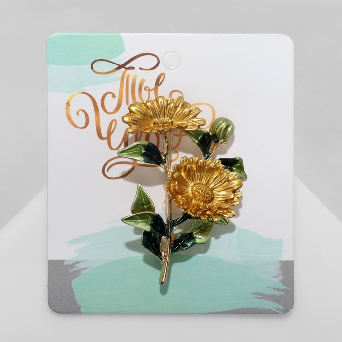 Брошь "Цветы" календула, цвет желто-зеленый в золоте
