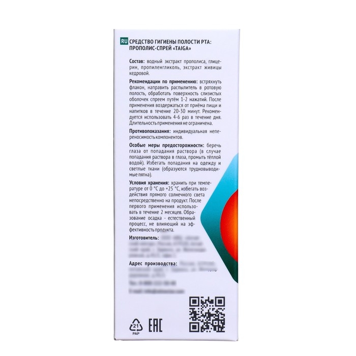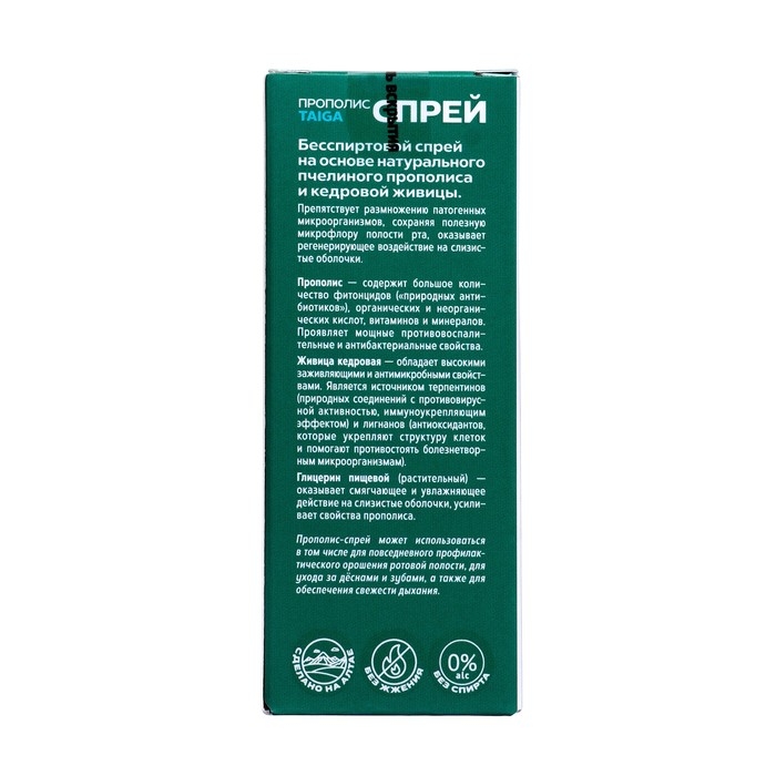 Состав: водный экстракт прополиса, пропиленгликоль, глицерин, экстракт живицы кедровой.