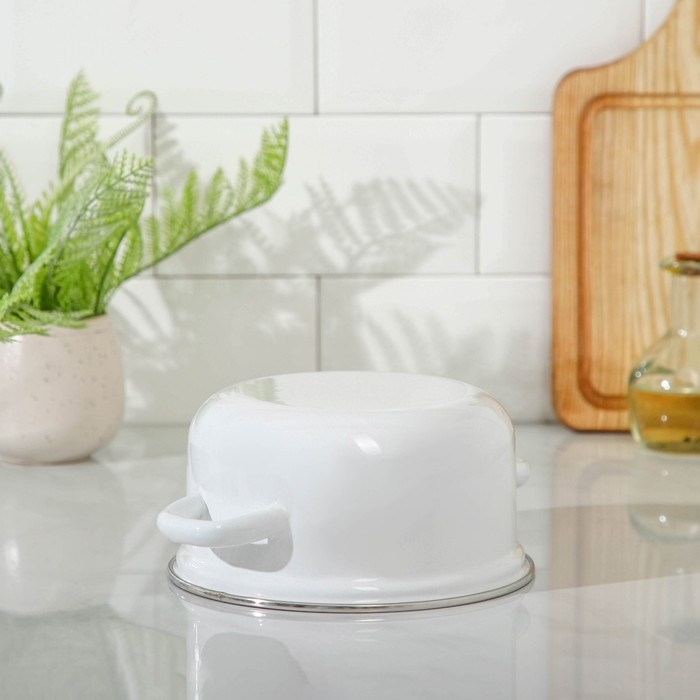 Кастрюля эмалированная, 1,5 л, d=16 см, h=9,5 см, цвет белый