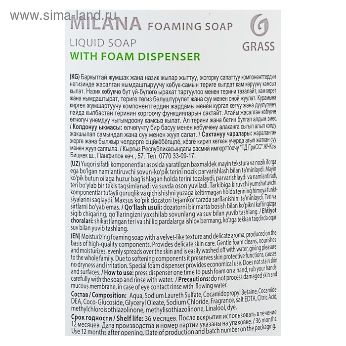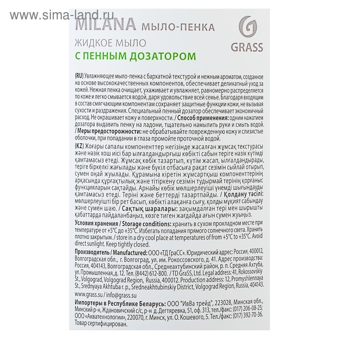 Жидкое пенка-мыло Grass Milana "Сливочно-фисташковое мороженое", 500 мл