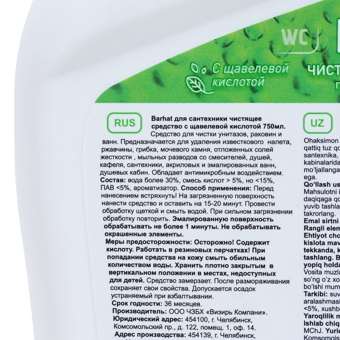 Предназначается для удаления известкового налета, ржавчины, грибка, мочевого камня, отложений солей жесткости, мыльных разводов со смесителей, душей, кафеля, сантехники, акриловых и эмалированных ванн, душевых кабин. Обладает антимикробным действием.