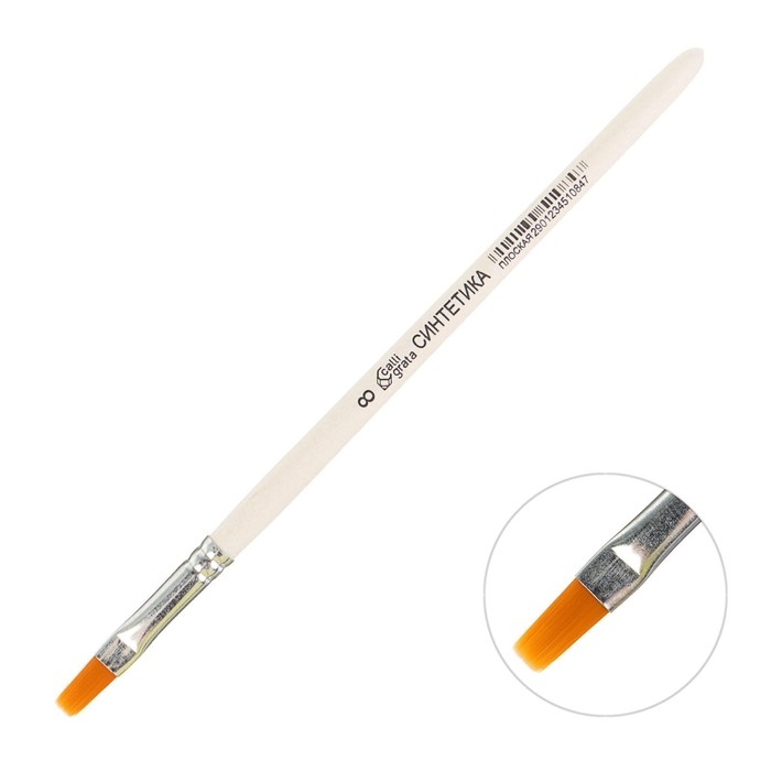 Кисть для рисования, Синтетика Плоская № 8 (ширина обоймы 8 мм; длина волоса 12 мм), деревянная ручка, Calligrata