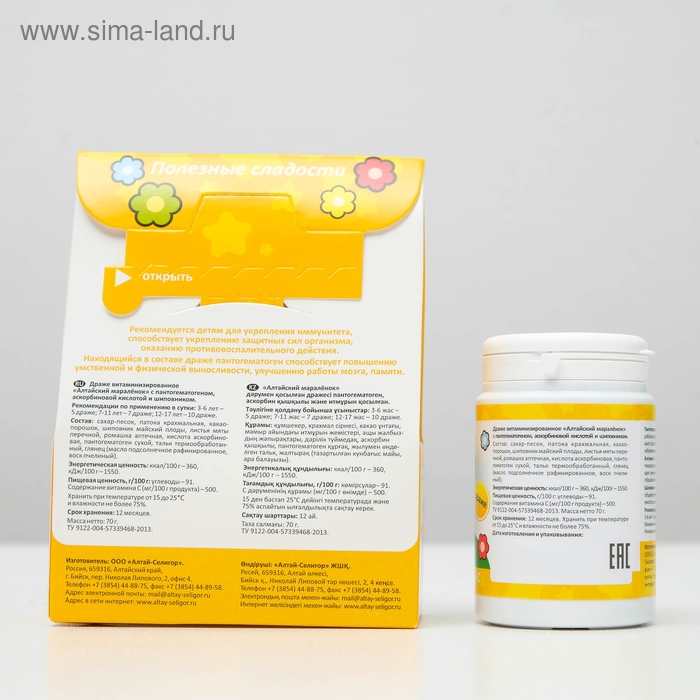 Драже для детей Altay Seligor «Алтайский маралёнок» с пантогематогеном, витамином С и шиповником, 70 г