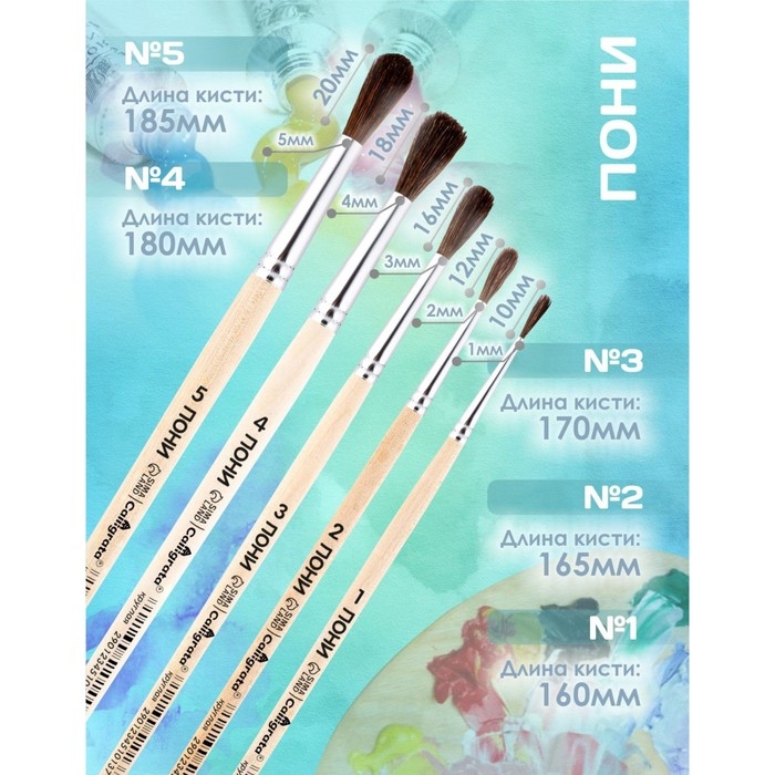 В наборе круглые кисти №1, №2, №3, №4, №5.
