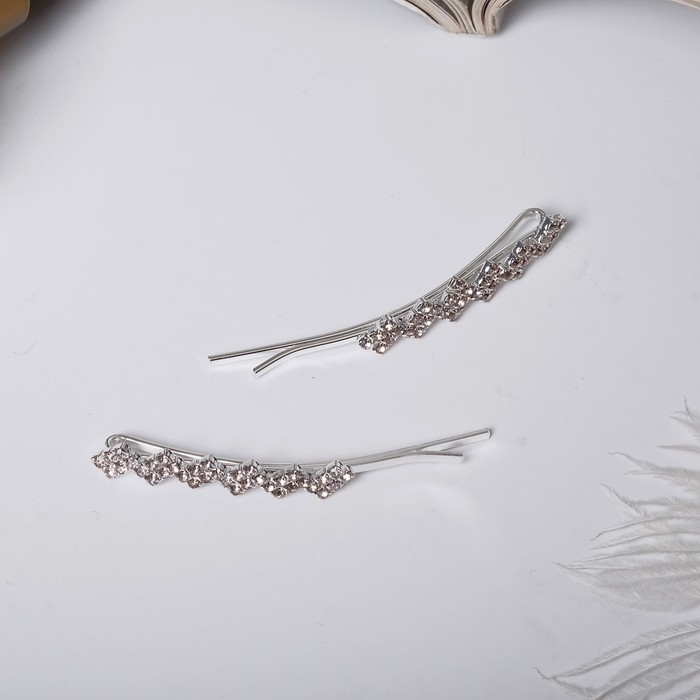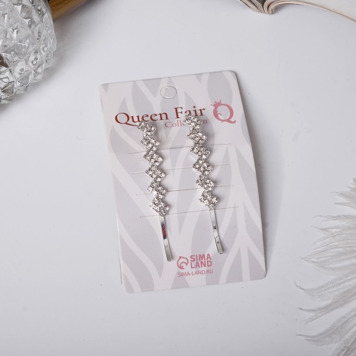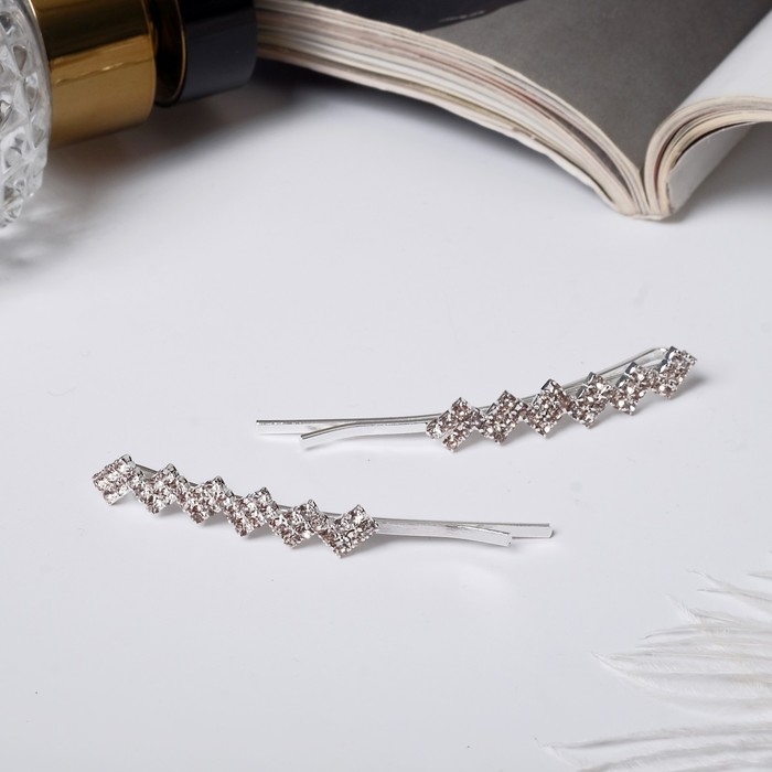 Невидимка для волос "Волшебный блеск" (набор 2 шт) ромбы, 5,5 см, серебро