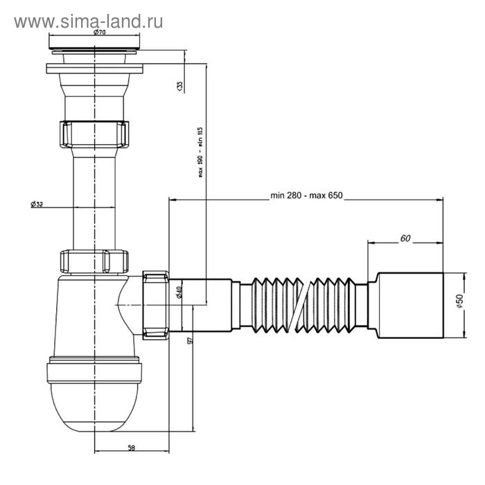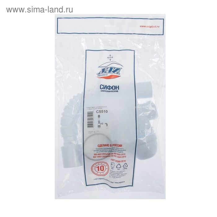 Сифон универсальный "АНИ Пласт" Варяг C5510, 1 1/2" х 40 мм, с гибкой трубой 40 x 50 мм