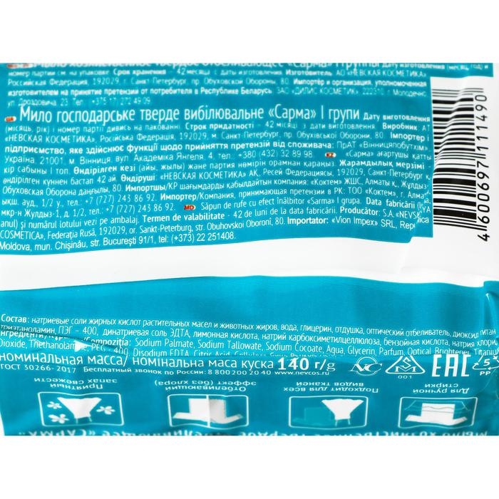 Мыло хозяйственное Sarma «Отбеливающее», 140 г