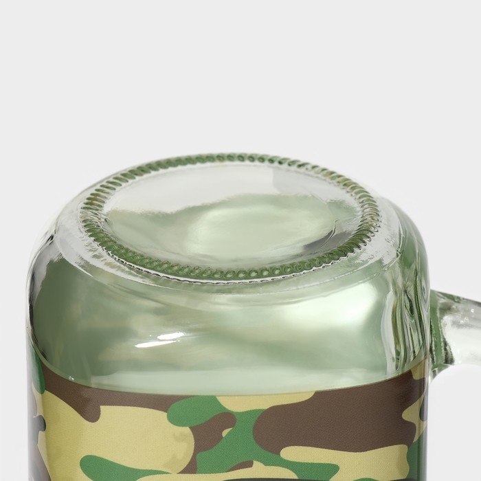 Кружка стеклянная Доляна «Милитари», 450 мл, 10×7,5×13 см, с ручкой, крышкой и трубочкой