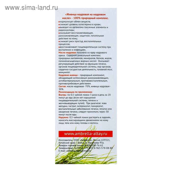 «Живица кедровая на кедровом масле» — 100%-ый природный комплекс.