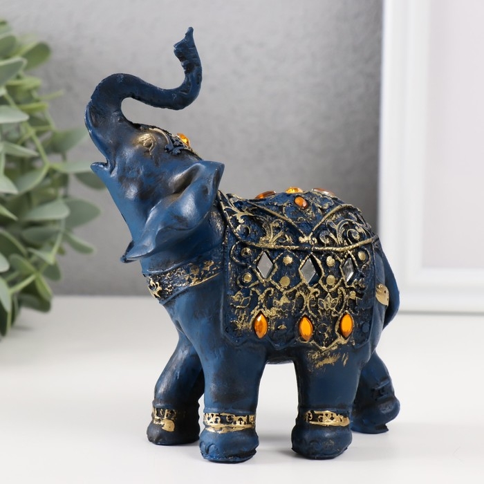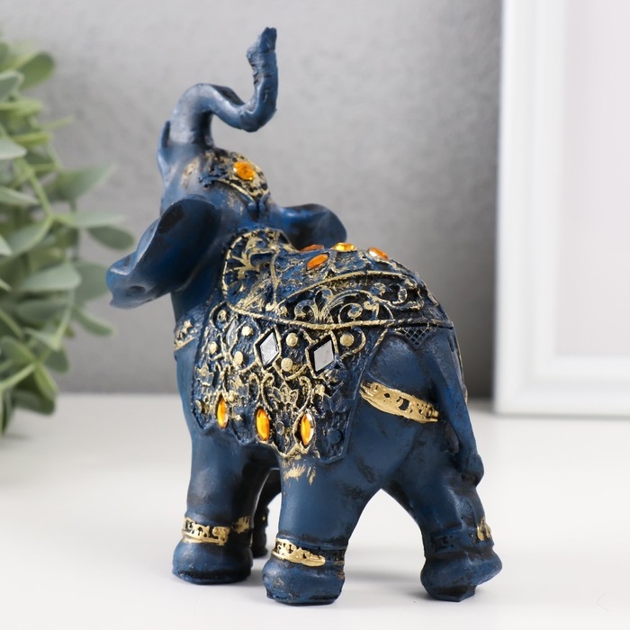 Сувенир полистоун "Синий слон в попоне с золотым узором и зеркалами" 14х7х11 см