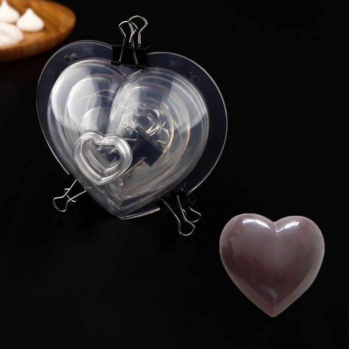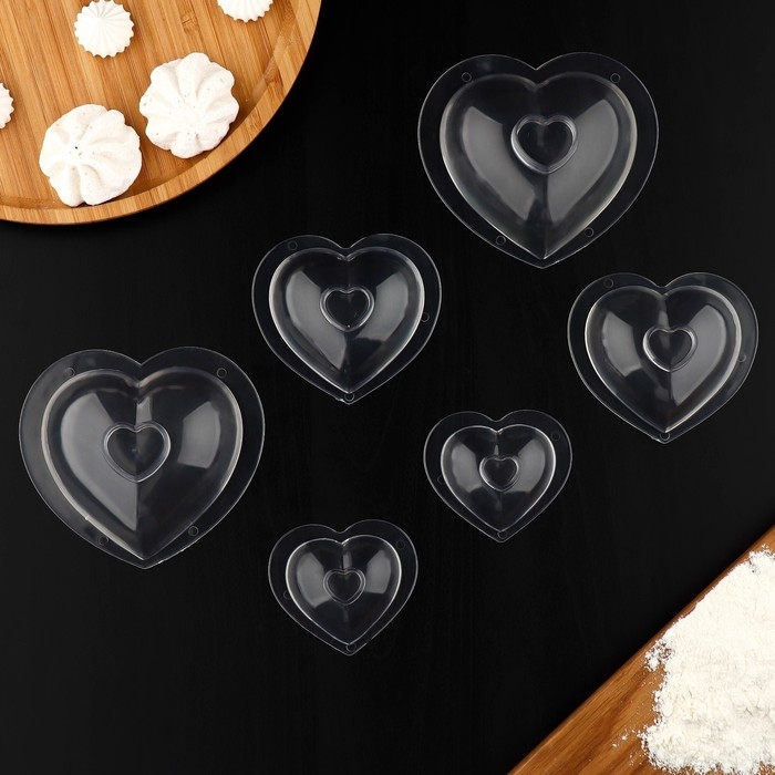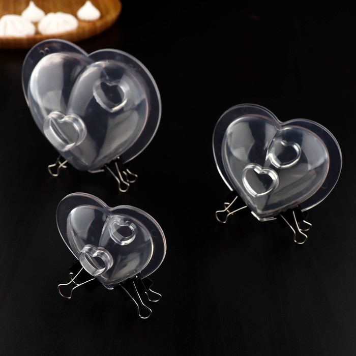 Набор молдов Доляна «Сердца», 3 шт, 11,2×10,5×9,5 / 9×7,7×6,5 / 7×5,5×4,5 см, цвет прозрачный