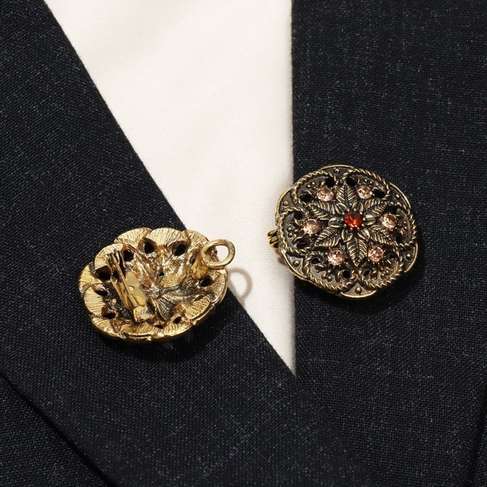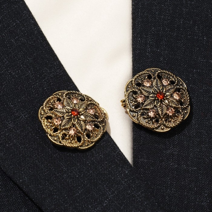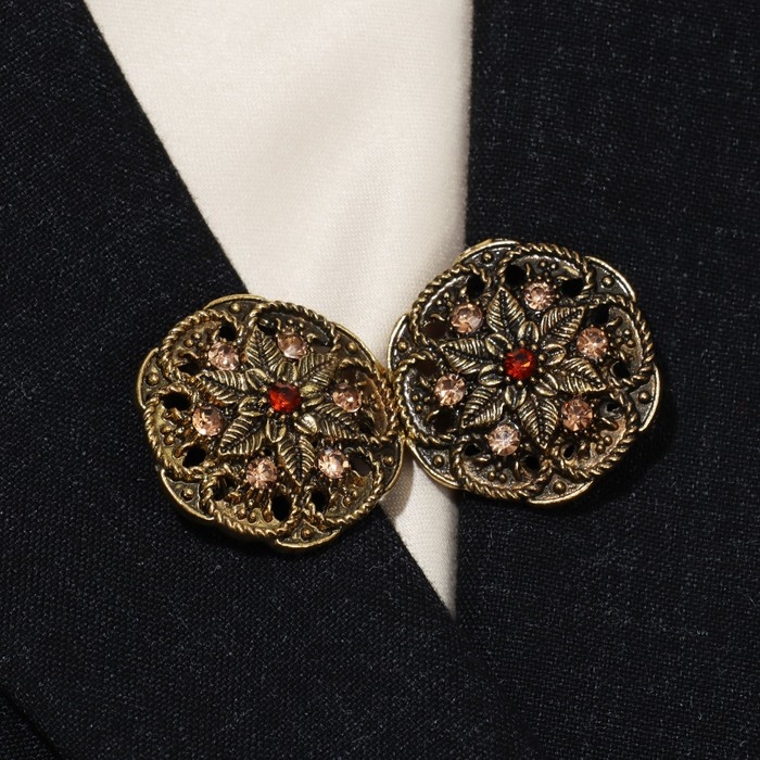 Зажим для кардигана «Цветы», цвет коричневый в чернёном золоте