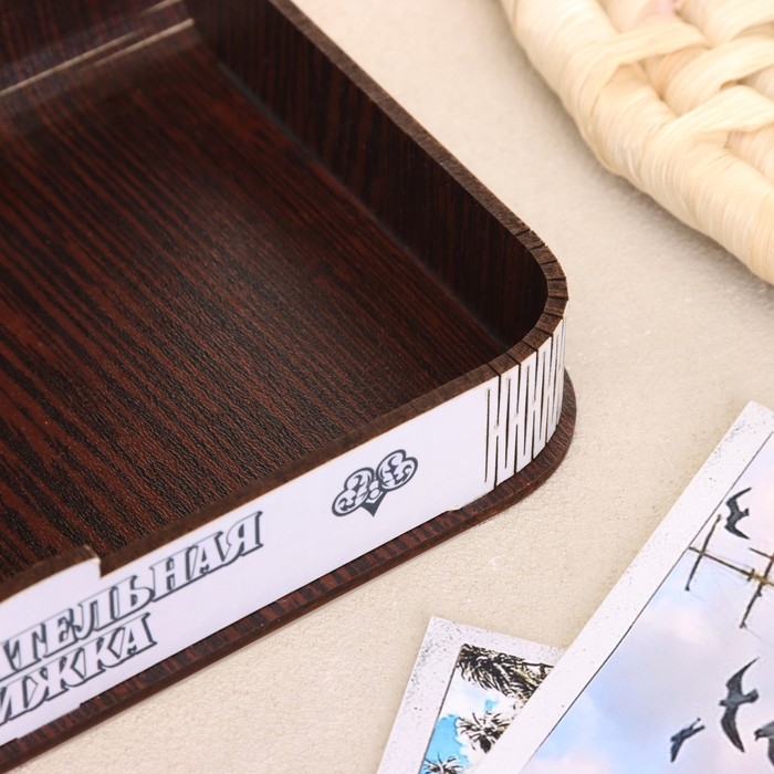 Шкатулка дерево 6 делений "Грибы" бежево-синяя 17х24х7 см