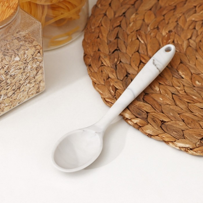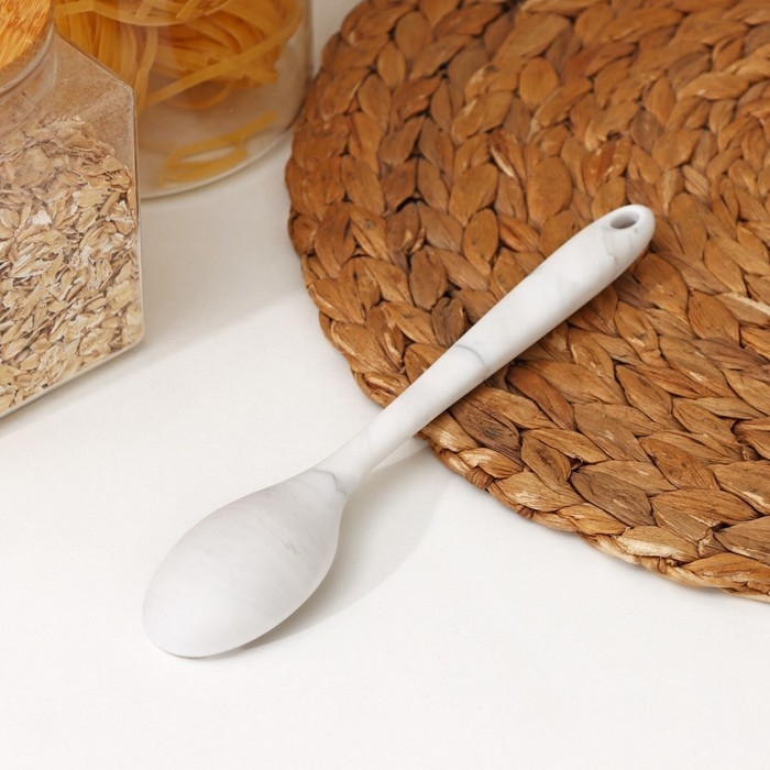 Ложка гарнирная Доляна «Мрамор», силикон, 20,5×4,3 см, цвет белый