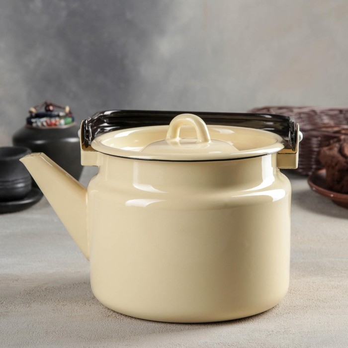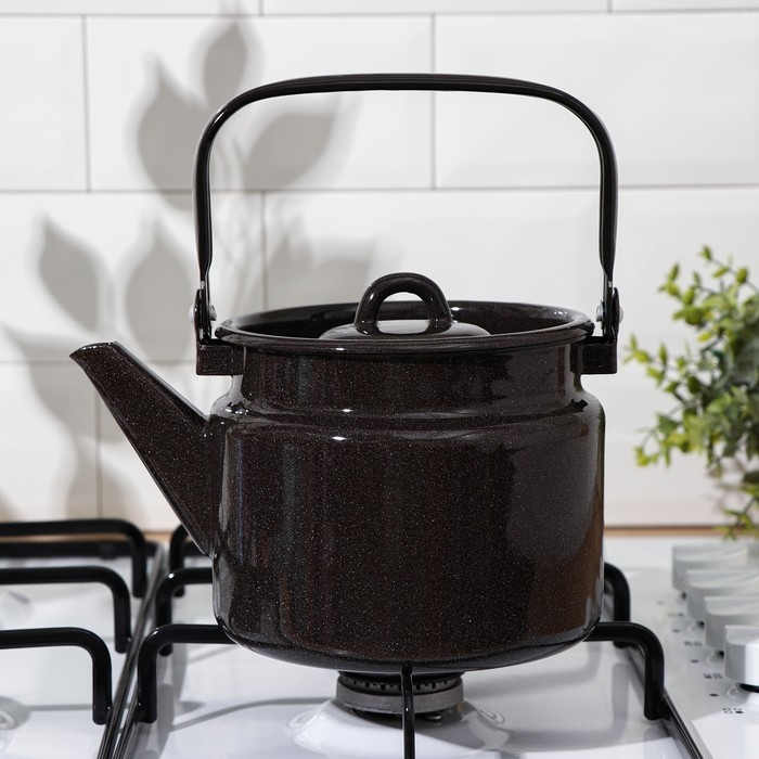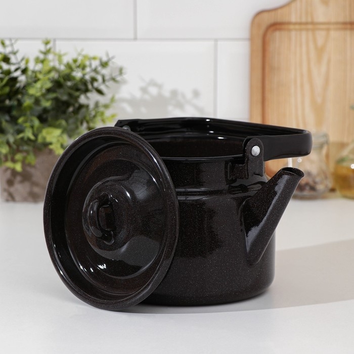 Чайник для плиты с эмалированным покрытием внутри Magma «Сайгон», 1,1 л, чугун, с ситом, индукция, цвет чёрный