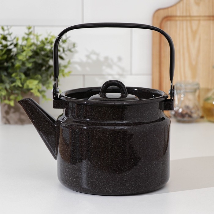 Чайник для плиты Доляна «Чёрный тигр», 700 мл, с ситом, чугун, эмалированное покрытие внутри, индукция, цвет чёрный