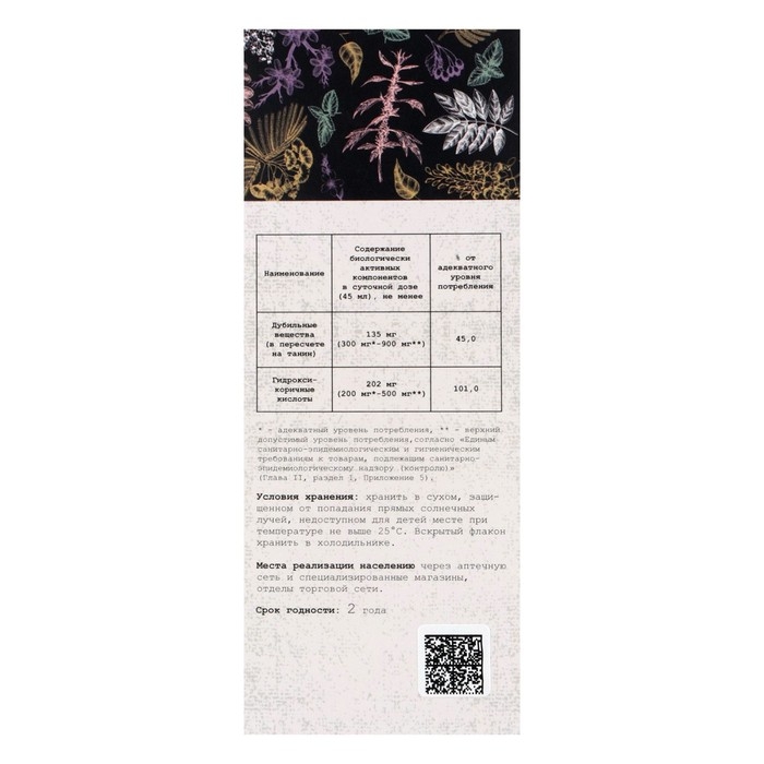 Состав: пустырник пятилопастный, трава, валериана лекарственная, корневища с корнями, боярышник кроваво-красный, плоды, мята перечная, листья, душица обыкновенная, трава, консервант сорбиновая кислота (Е200), вода питьевая.