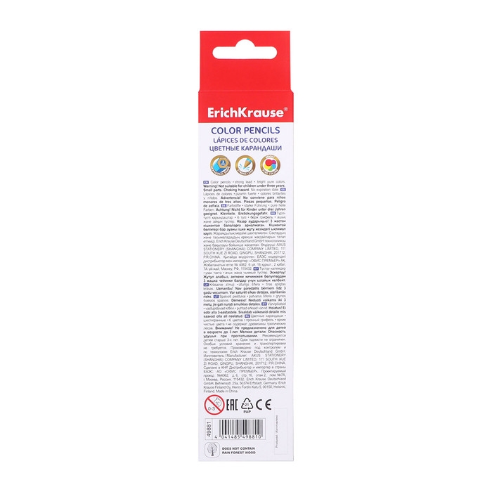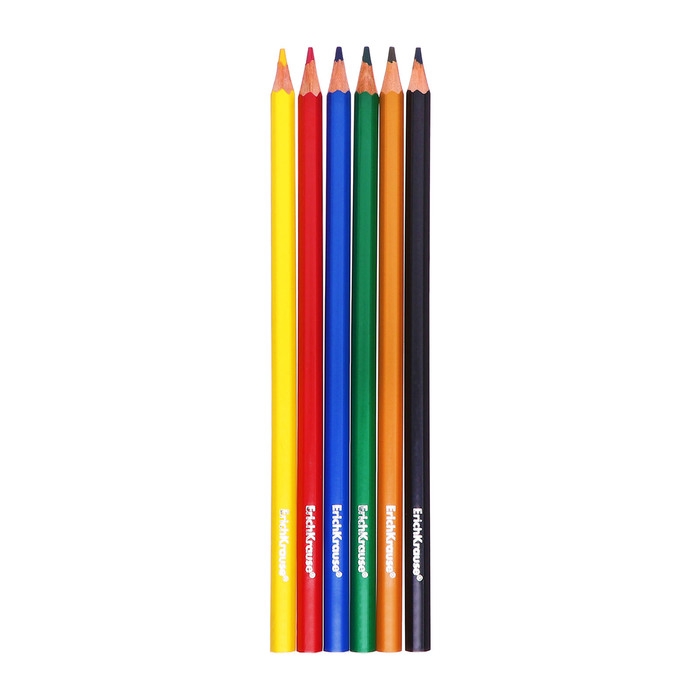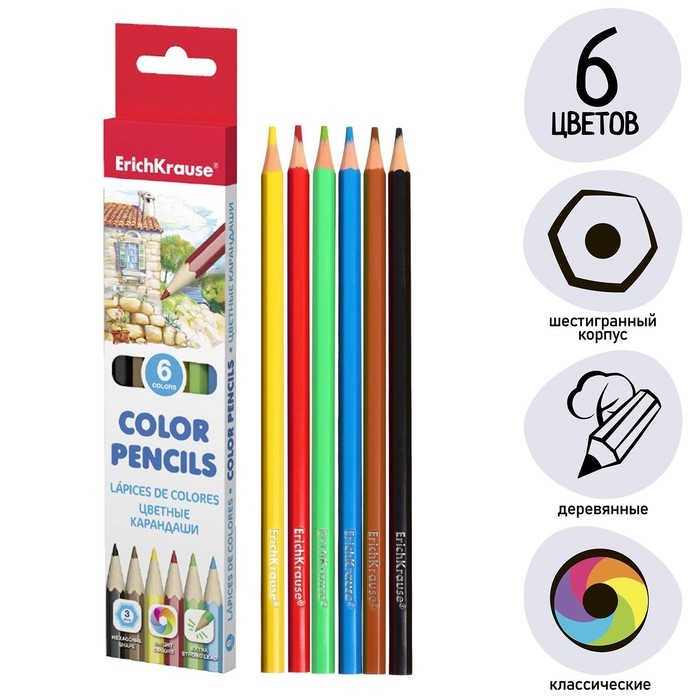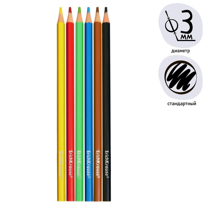 Карандаши 6 цветов ErichKrause Standart, дерево, шестигранные, 3.0 мм грифель, картонная упаковка, европодвес